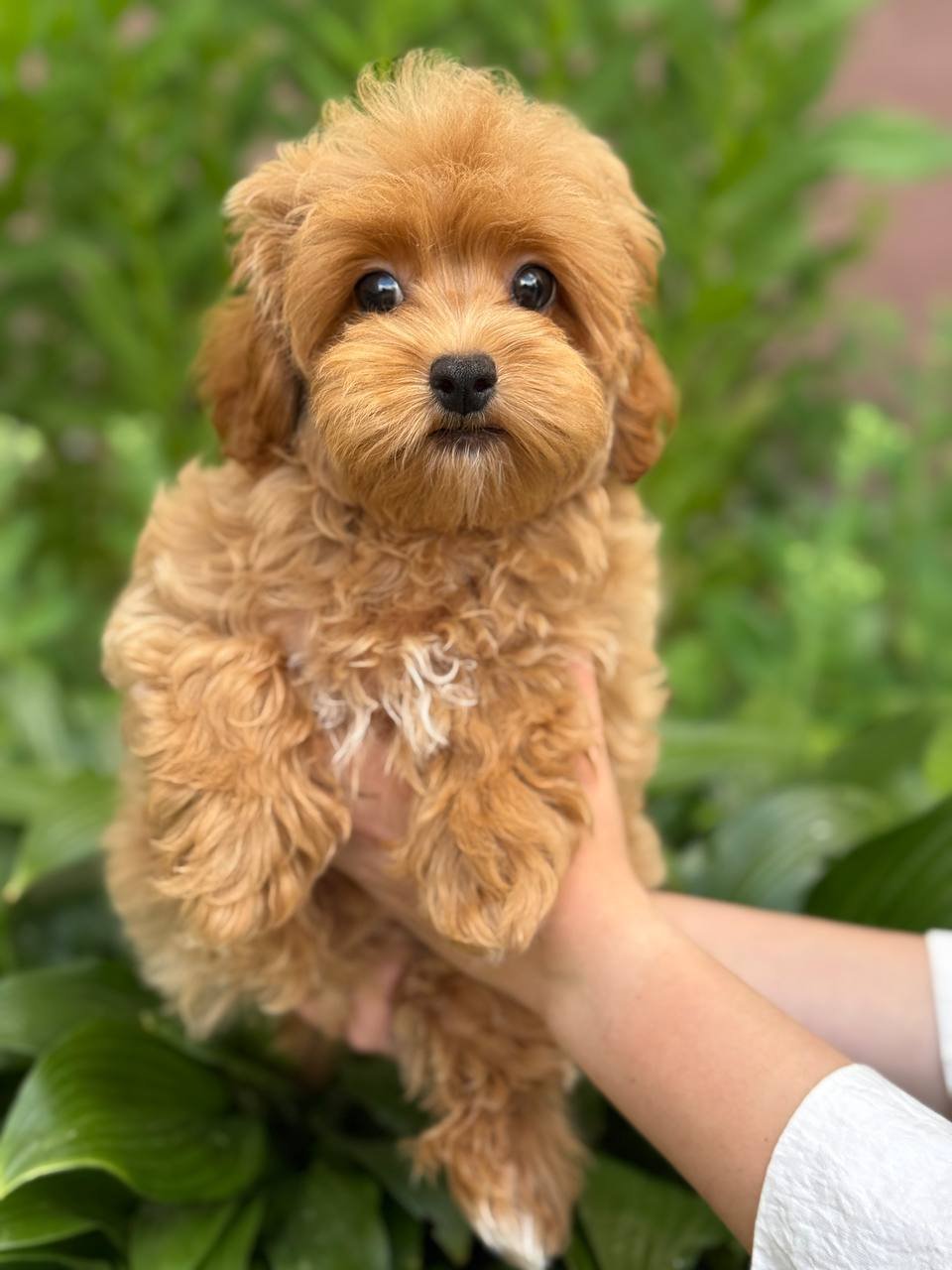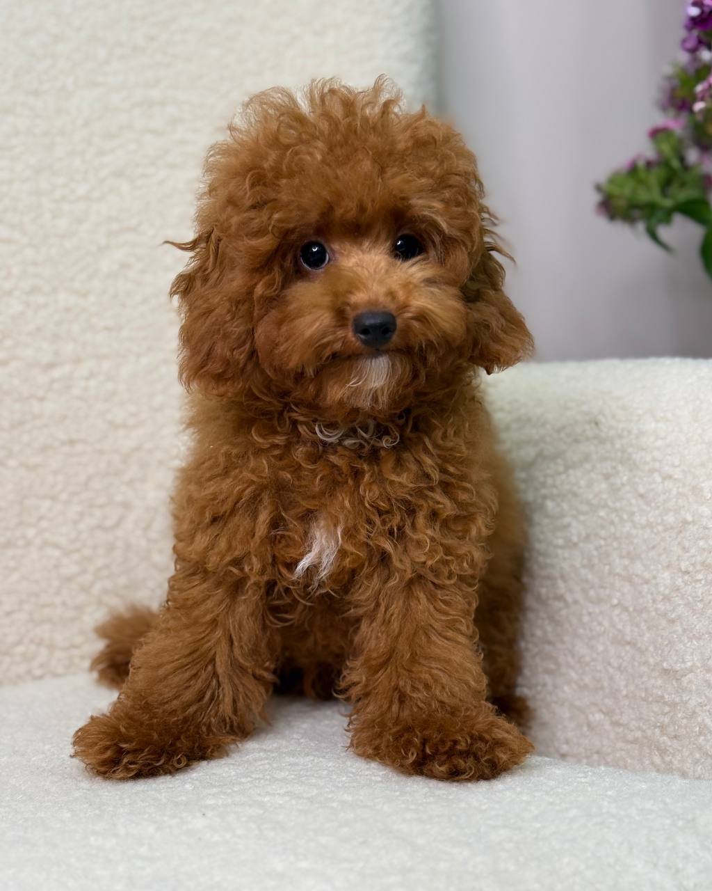 Cheerful, smart and very sociable F2 little friend Apollo 🐶 This little one has a rich red brown coat and the kindest little eyes.