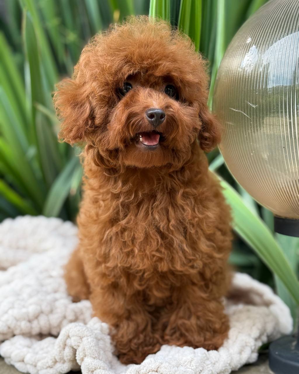 A curly little joy and sweetest girl — get to know Erika better 🐶 This little bunny has a rich red brown coat and funny little curls ✨